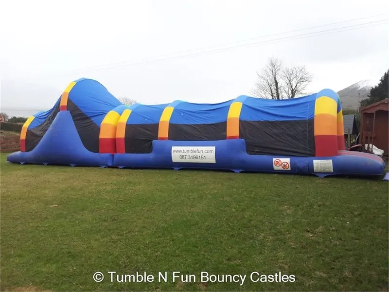 This 50ft all weather obstacle course is very popular as its covered in for all weather. This unit is packed with obstacles and challenges to complete and finish with a slide. This obstacle even has a crawl through section. This is an excellent choice for the young adults as it was designed for the teenager and adult in mind. We all need a challenge can you do it?